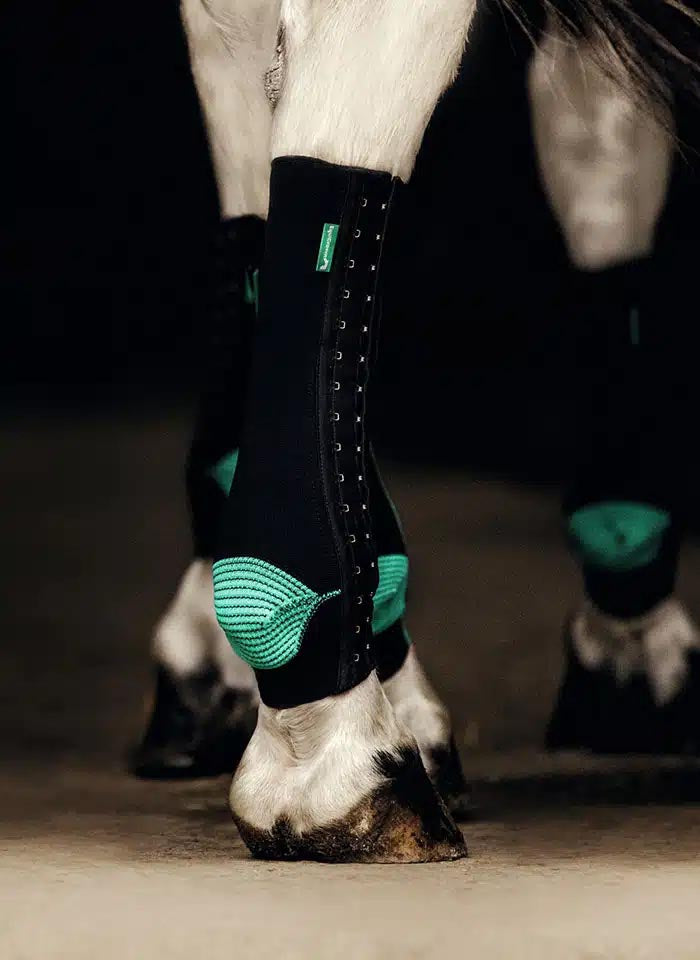 EquiCrown® FIT compression wraps are a superb choice for horses that stock up during stalling, shows, or transport. The FIT is easy to apply with a two-row hook and eye fastening down the front of the cannon. The gentle massaging effect of the FIT compression wrap reduces the edema so that your horse’s legs are tight and cool. This style is also an excellent tool for managing lymphangitis, pre/post-surgery edema, wound bandaging, and scar treatment..