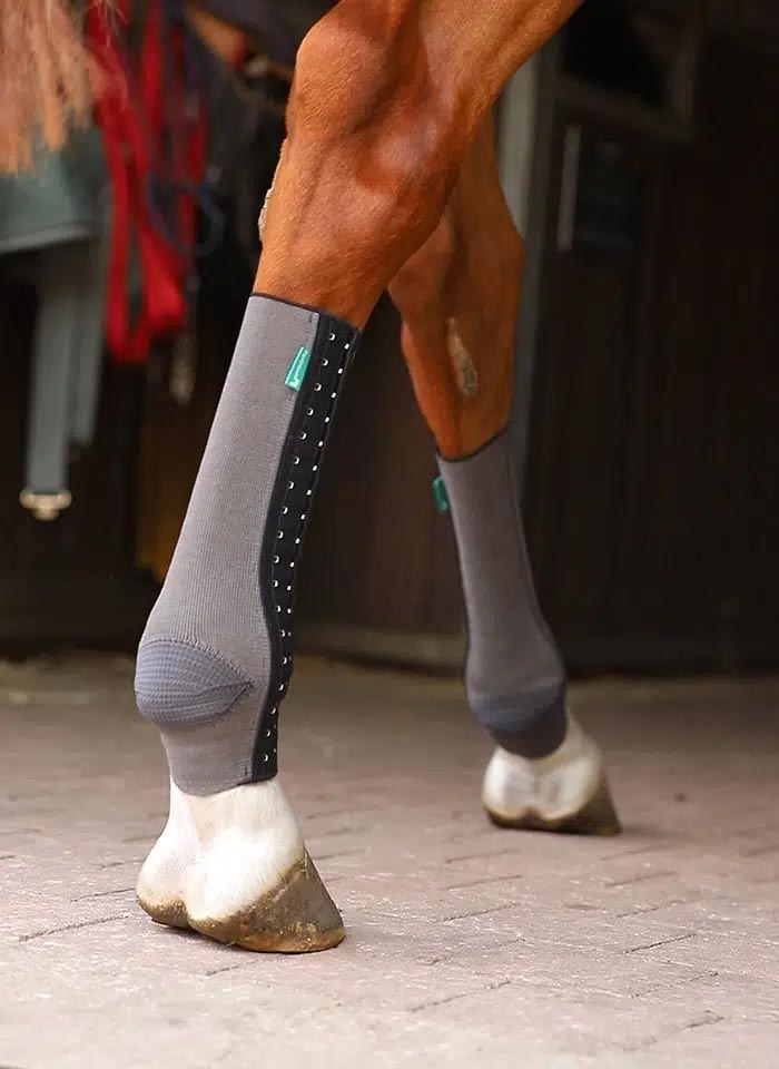EquiCrown FIT Silver compression wraps are a good choice for horses that experience “mud fever” or dermatological conditions to the lower leg region. Bacteria found on the horse’s leg (e.g. Staphylococcus aureus, MRSA) are reduced so that the wound area can heal. This style is an excellent first stage approach to horses that have experienced cellulitis. The silver ions mitigate the ongoing risk of further infection, and the compression stimulates the circulation helping to reduce the edema.